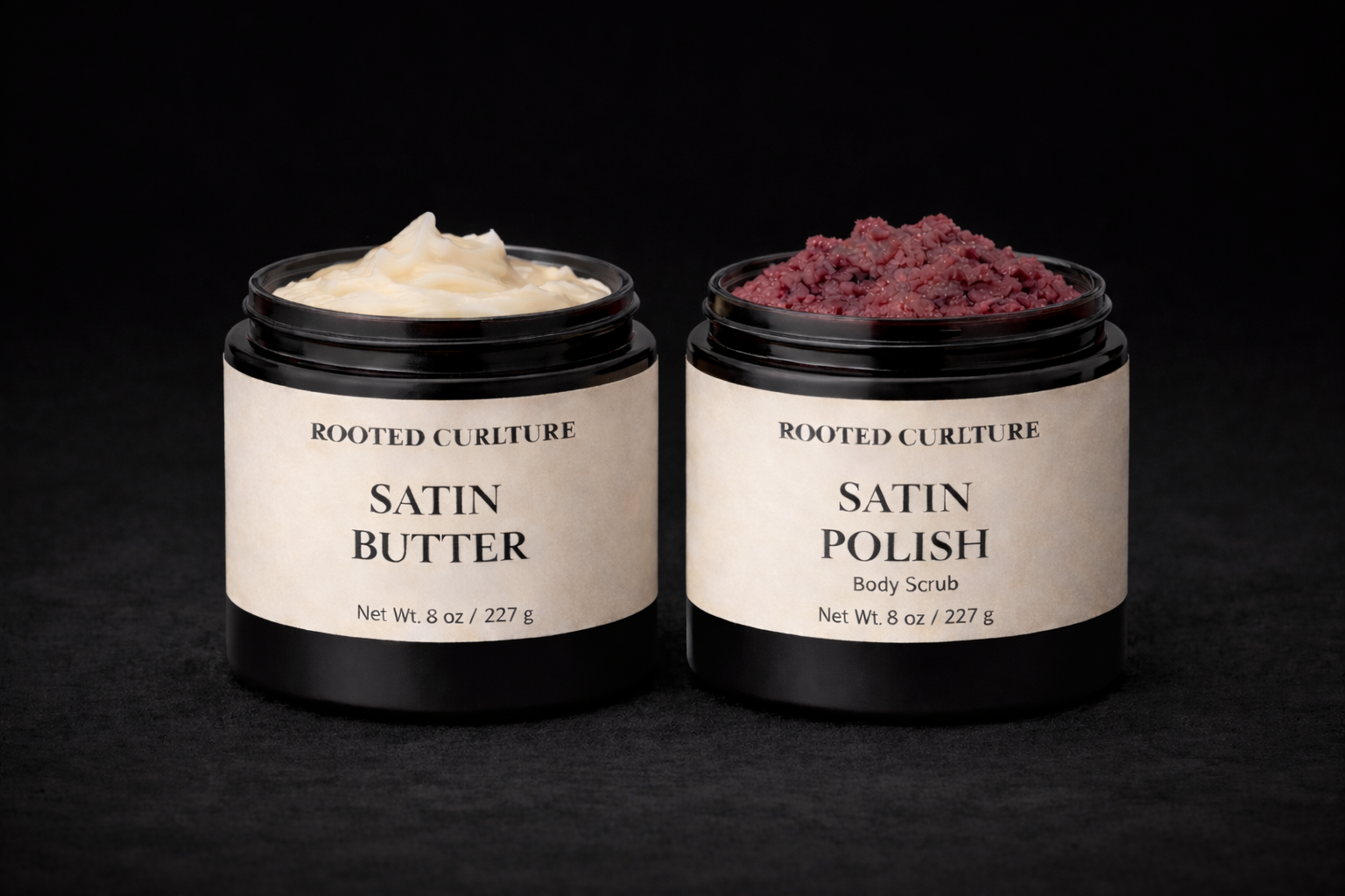 The Satin Body Ritual is a two-step body care experience designed to reset your skin through intention, texture, and nourishment.